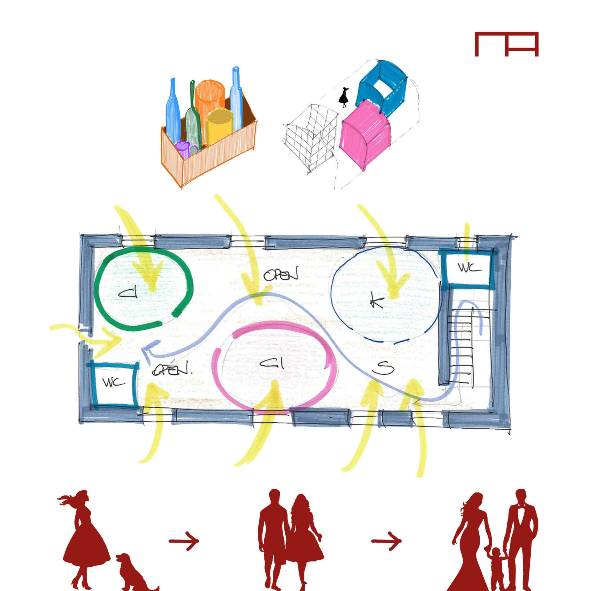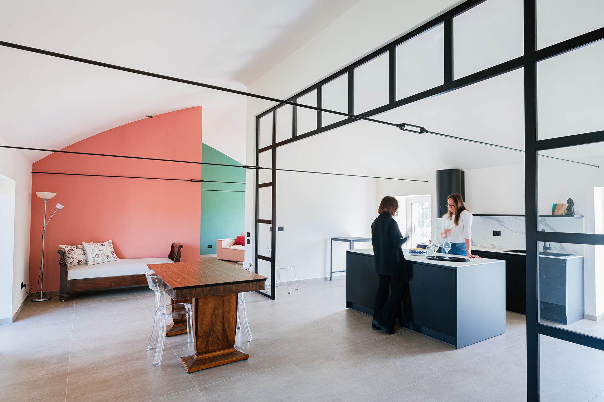 Questo spazio suggerisce un uso flessibile, una specie di contenitore di tanti “box” diversi e variabili nel tempo.