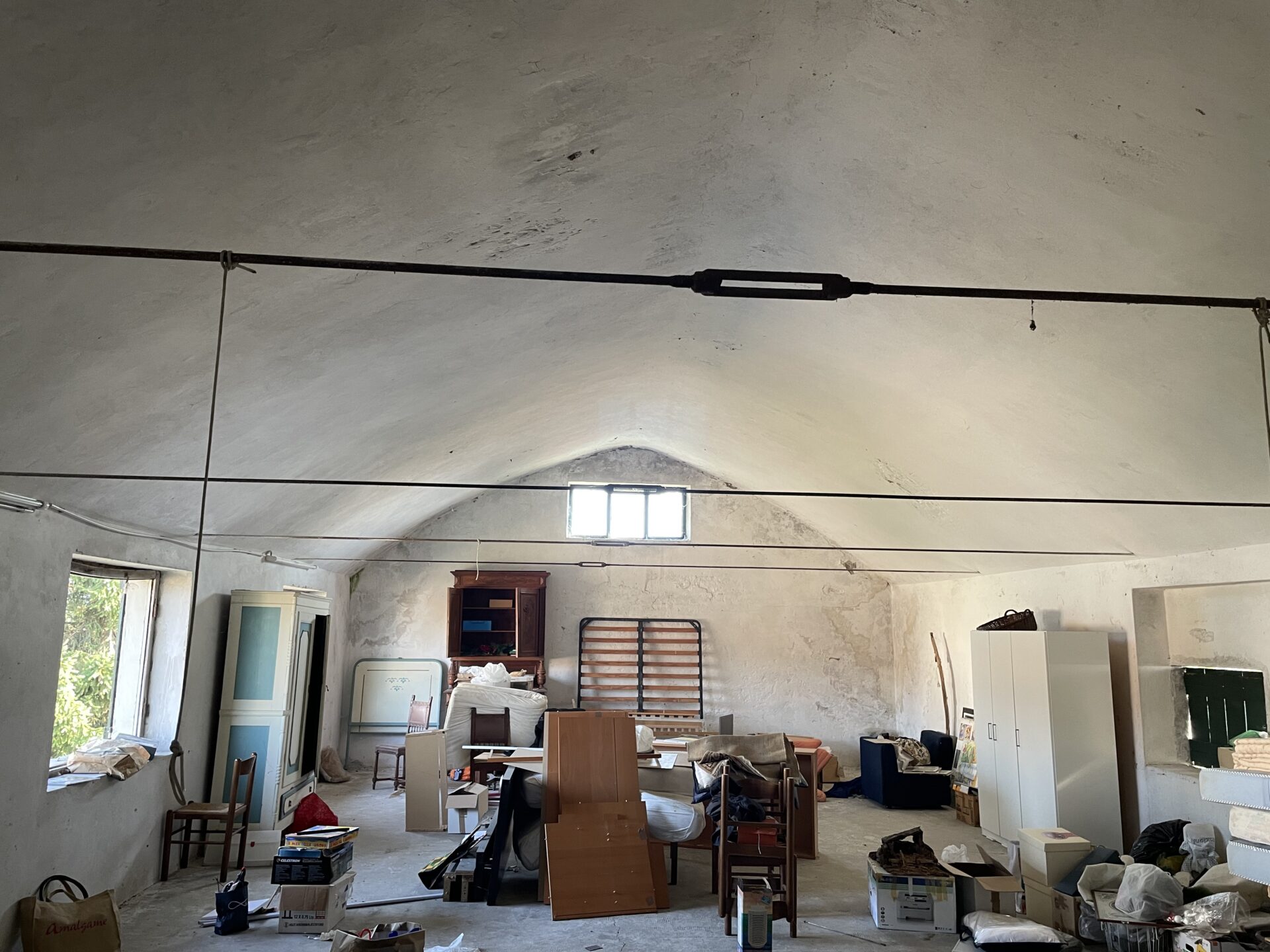 L’edificio, risalente alla metà del secolo scorso, attualmente un deposito attrezzi/magazzino, presenta una interessante open space al primo piano, con volta a botte.