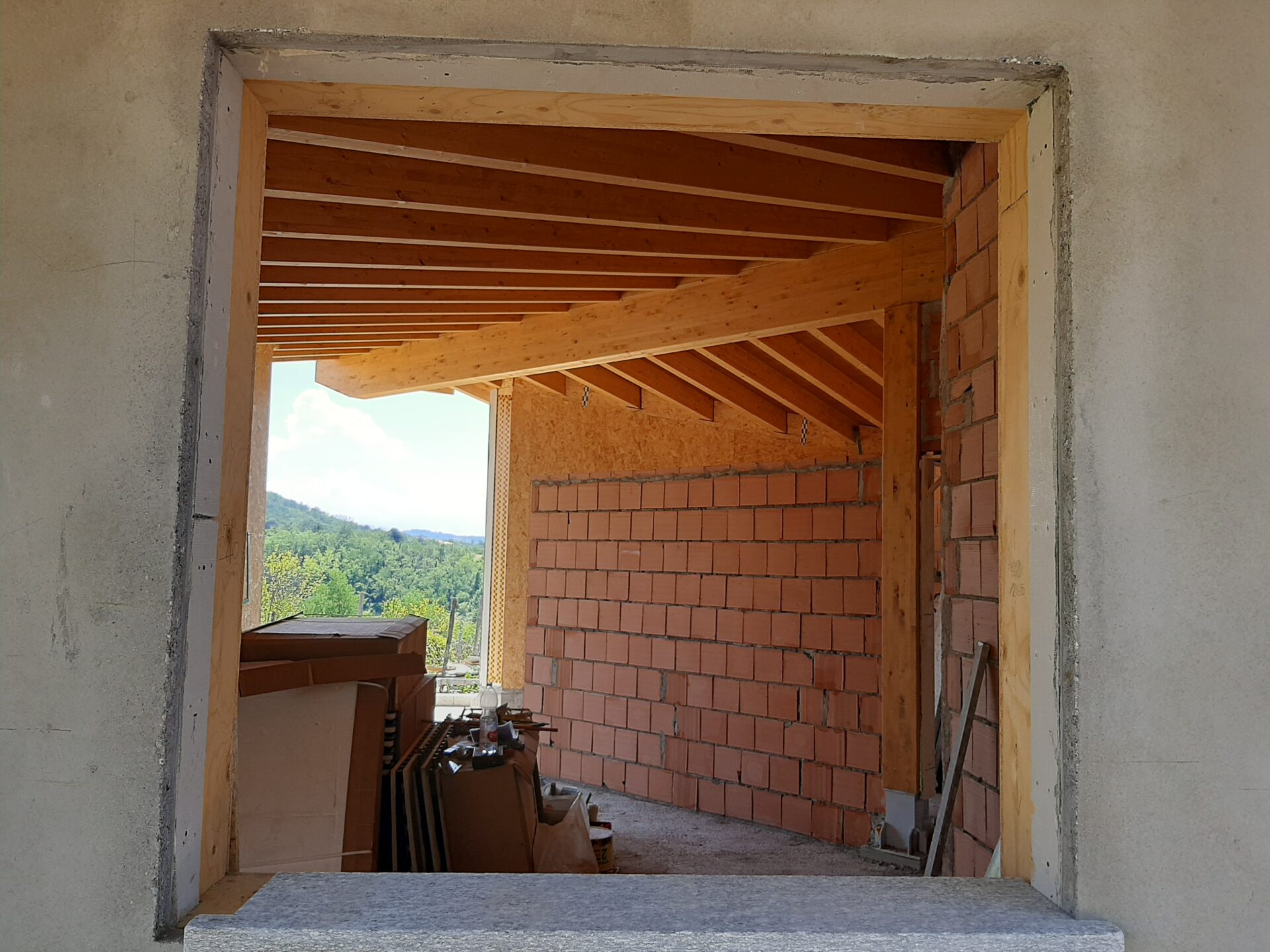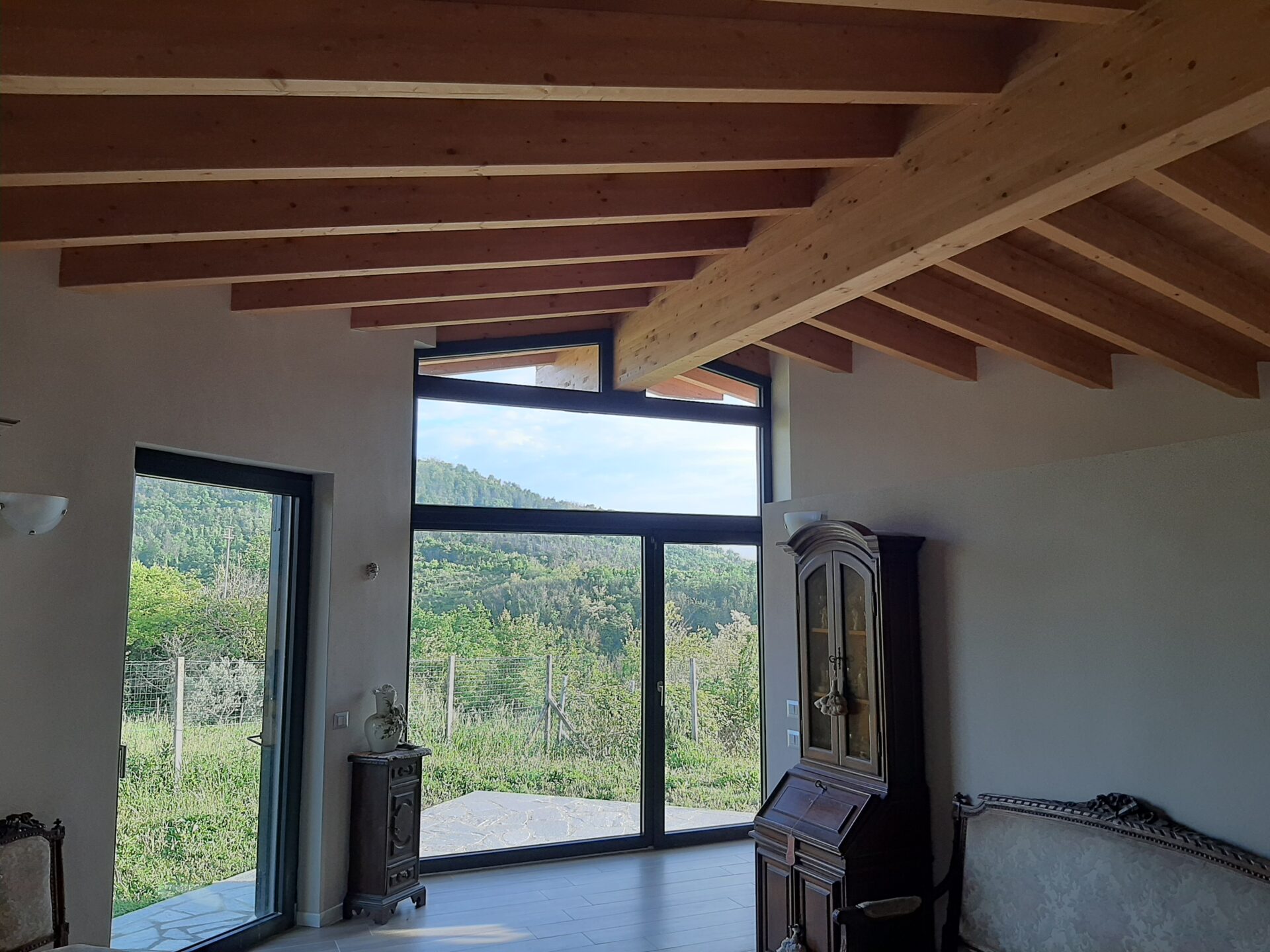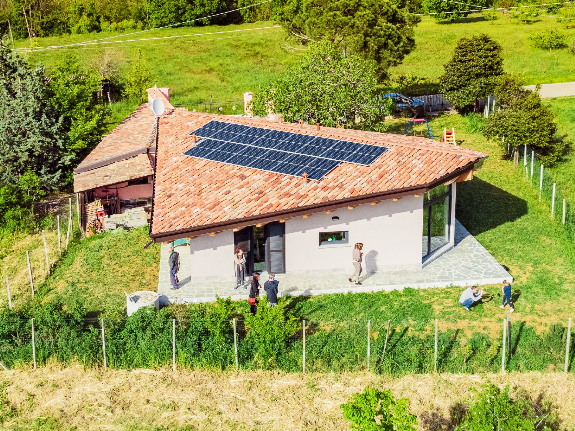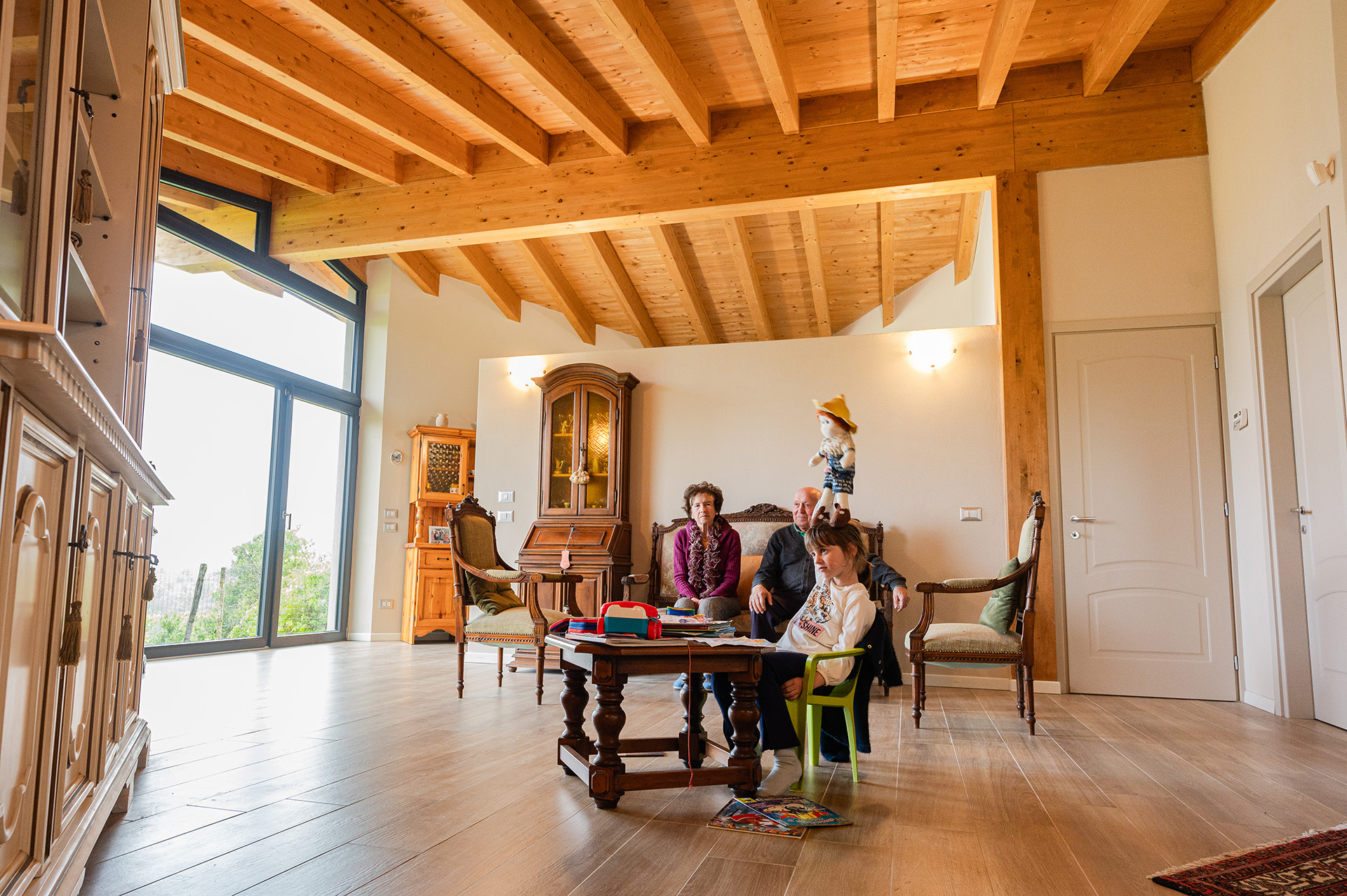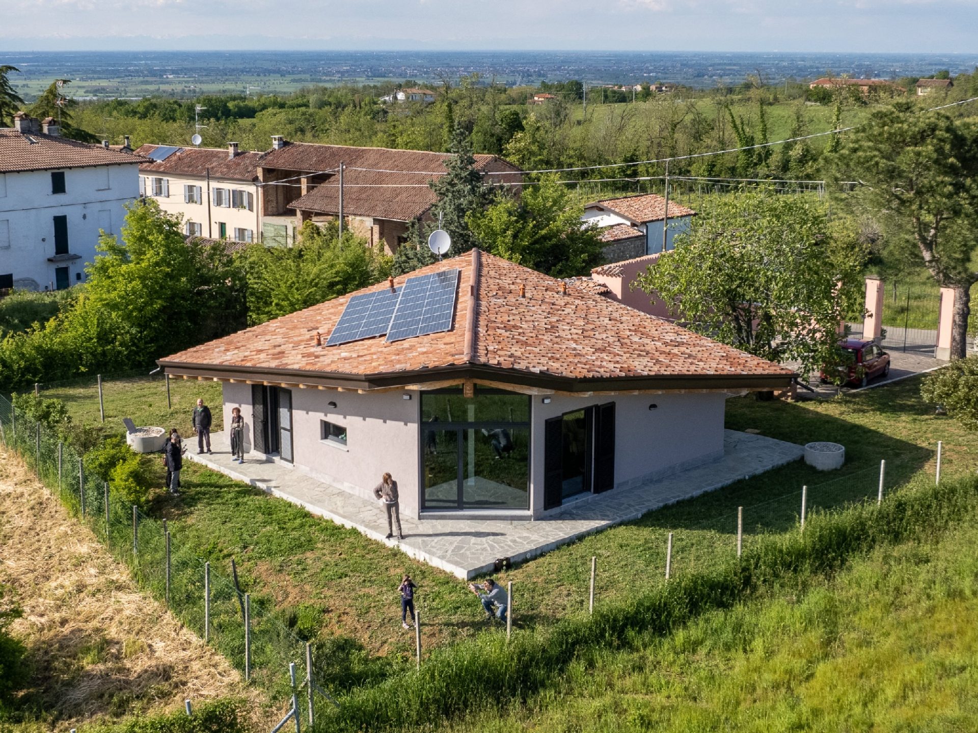 Si è intanto optato per una “traslazione”, in modo da poter mantenere la casa esistente sino a quando la nuova non fosse terminata, e di utilizzare una tecnologia prefabbricata in legno, per accelerare i tempi. Infatti in meno di un anno la famiglia poteva trasferirsi…ed a soli cinque metri da dove aveva vissuto sino ad allora.